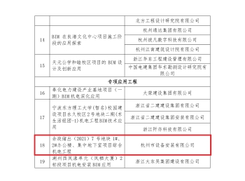近日,由浙江省建筑業(yè)技術(shù)創(chuàng)新協(xié)會和浙江省安裝行業(yè)協(xié)會組織的浙江省第九屆“筑新杯”BIM應(yīng)用比賽獲獎名單公布。公司“余政儲出(2021)7號地塊1#、2#辦公樓、集中地下室項(xiàng)目綜合機(jī)電工程”(阿里巴巴西溪六期)獲得浙江省第九屆“筑新杯”BIM應(yīng)用比賽專項(xiàng)應(yīng)用工程組二等獎。